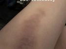У своєму Instagram зірка зазначила, що травмувала ногу. Крім цього, показала велику гематому.