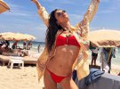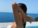 Зірка, яка має 12 млн. підписників в Instagram, позувала в білому бікіні. Образ доповнила масивними прикрасами. Також модель покрутилась перед камерою у зеленому купальнику. Пляжний аутфіт завершила рушником на голові й сонцезахисними окулярами.