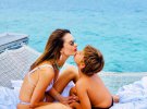 На фото бразилійка спокусливо позує в гірчичному мінібікіні, тримаючись за дерев'яні сходи. Зірка відпочиває із сім'єю на Мальдівських островах.