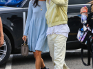 Для заходу Бред одягнув світлі джинси, білу футболку, жовтий бомбер і панаму. Його кохана обрала блакитну сукню і чорні чоботи. Образ доповнила сонцезахисними окулярами й подовженою підвіскою на шиї.