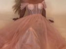 Артистка попозувала у пишній сукні на знімках, опублікованих в Instagram. Ніжно-рожеве вбрання прикрашене багатошаровою спідницею, спущеними шлейками та прозорим корсетним верхом. У підписі до фото зірка зізналася, що вже готується до весілля.