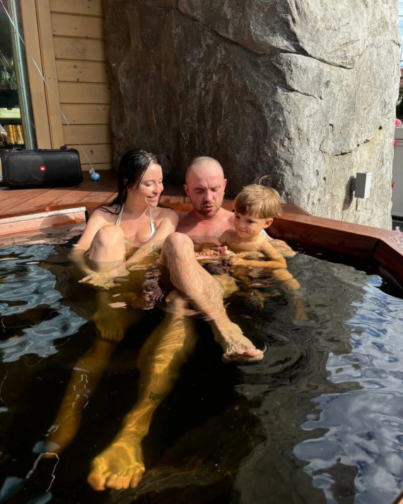Зіркова родина купалась у чані, хлопчик катався на велосипеді, а зранку батько готував спільний сніданок. Крім цього були пісні під гітару та тепла зустріч з родичами.