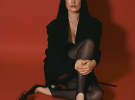 Одягла чорні прозорі легінси та піджак на оголене тіло. Аутфіт завершила босоніжками, яскравим макіяжем і розпущеним волоссям.