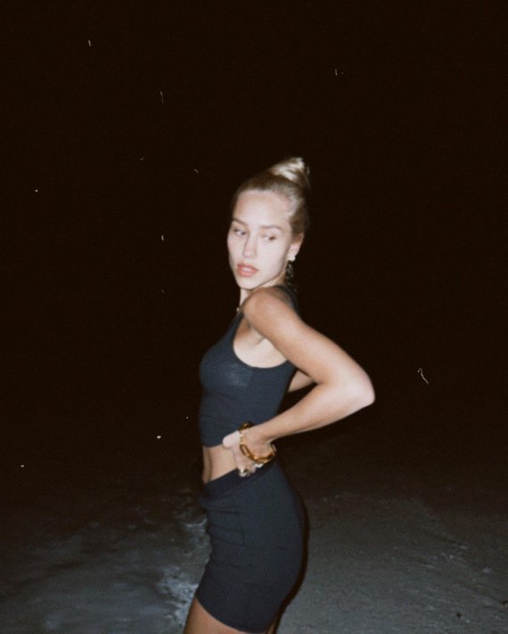 На світлинах блогерка зображена у чорних шортах і майці, а на деяких фото позує топлес, прикривши бюст руками. Окрім того, Квіткова також дала можливість підписникам роздивитися її струнку фігуру.