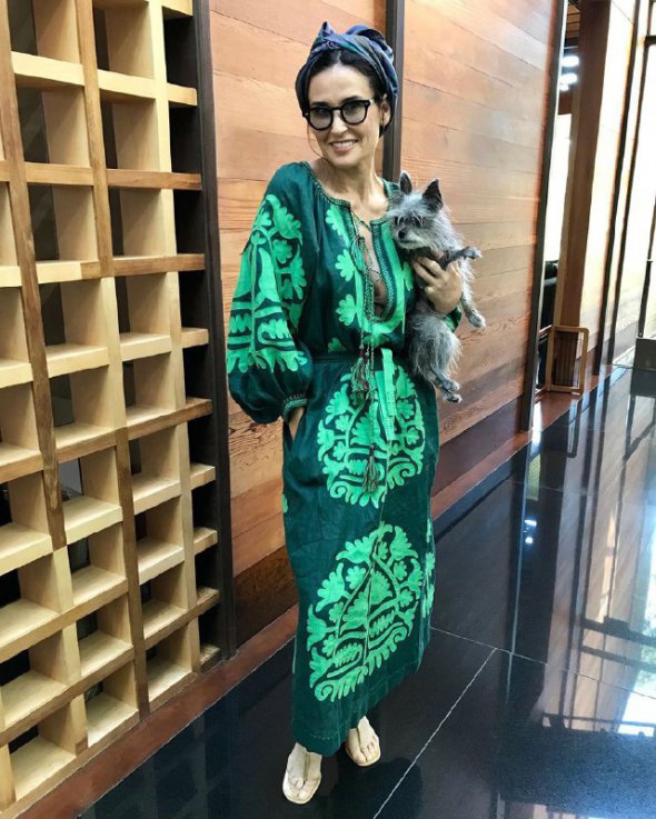 Американська актриса Демі Мур засвітилась у довгій вишиванці від українського дизайнера Віти Кін.