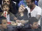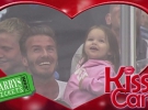 Справжньою ж зіркою матчу стала крихітка Харпер Севен, яка весь час провела на руках у Девіда, а коли камера Kiss Cam навела об'єктив на зворушливу парочку, татко чмокнув доньку в щічку.
