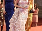 Ввечері ж дівчина шокувала прихильників ще більш відвертим вбранням - довгою сукнею з мереживом та відкритими плечима. Співачка похизувалась перед камерами також своїми стрункими ногами.