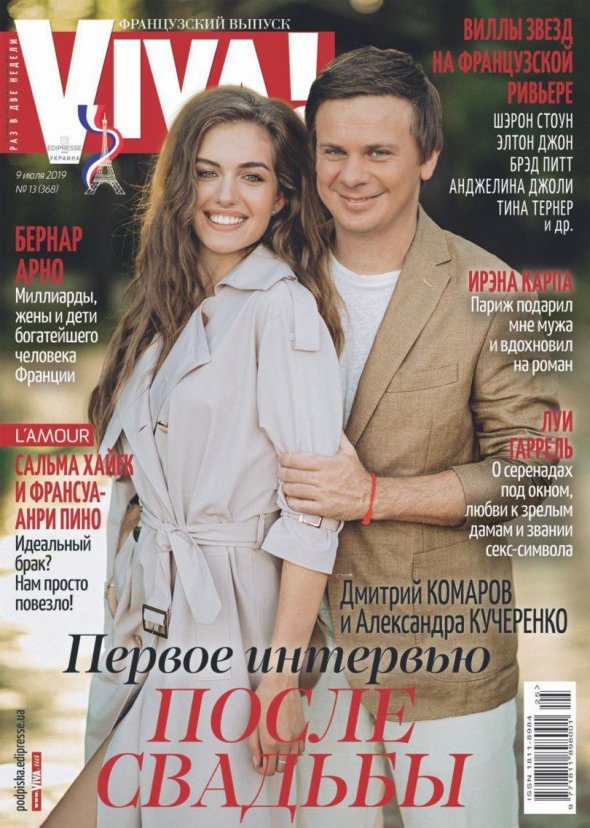 Український ведучий програми "Світ навиворіт" Дмитро Комаров з молодою дружиною Олександрою Кучеренко знявся для обкладинки глянцю.