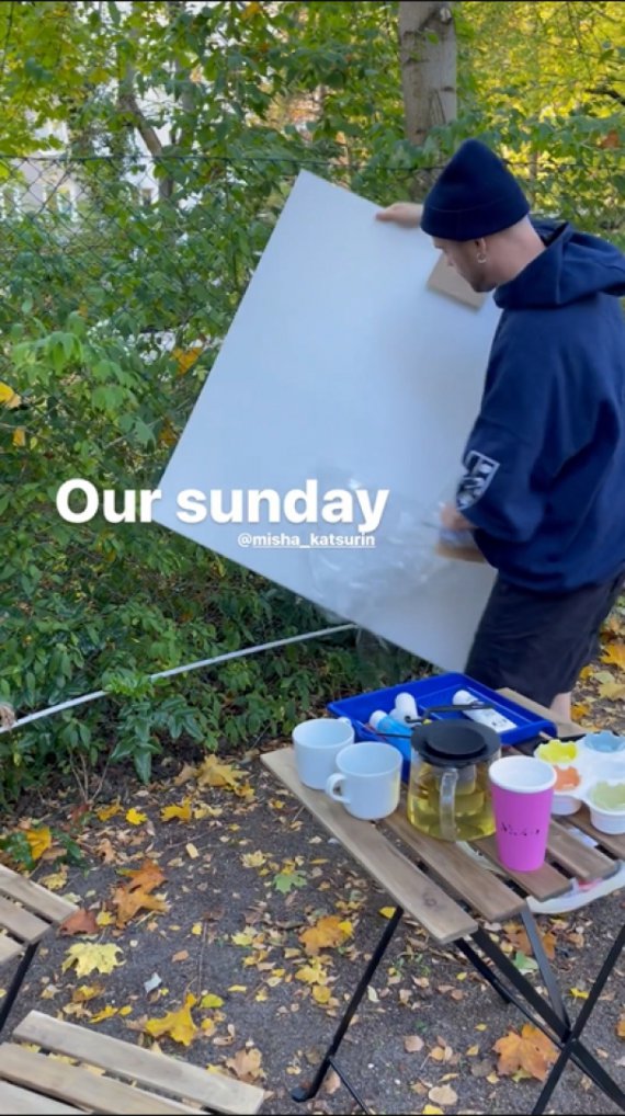 Закохані вирішили провести час у творчій атмосфері та разом створити витвір мистецтва. У Instagtram Дорофєєва поділилася кадрами, на яких вони із Кацуріним намалювали спільну картину.