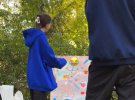 Дорофєєва з Кацуріним намалювали картину у рожево-синіх відтінках та зобразили на ній усе, що забажається.