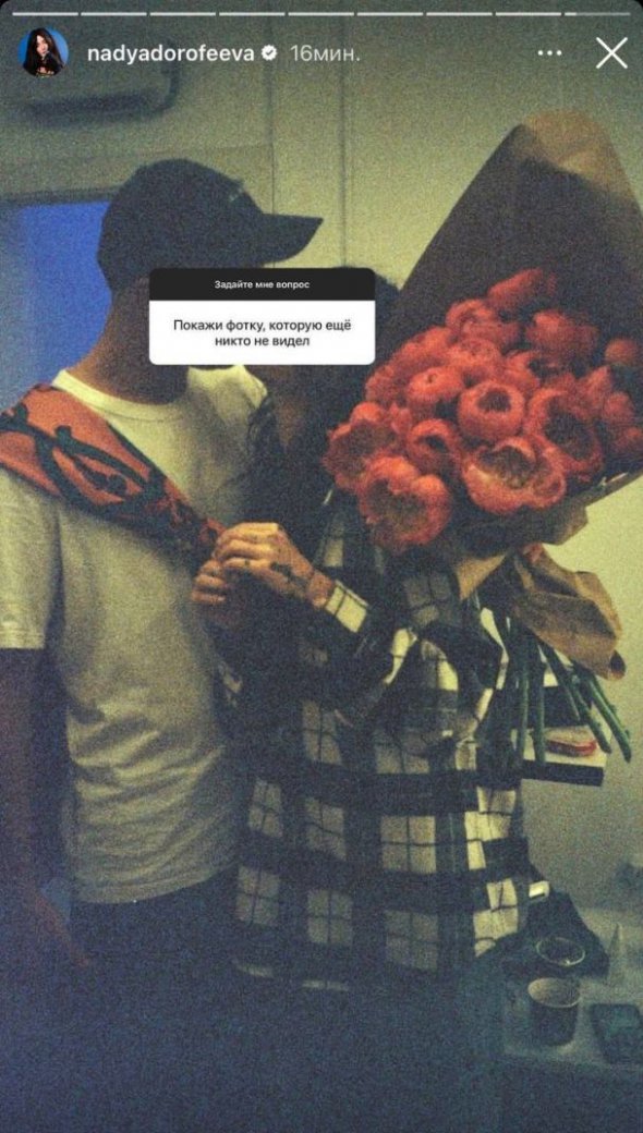 Дорофєєва вирішила поділитися особистим фото із Михайлом Кацуріним. На світлині вона позує перед камерою з великим букетом півоній. Обранець зірки тим часом її обнімав однією рукою та ніжно цілував.