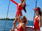 Ярослава Хома позує у яскравому червоному купальнику, масивних сонцезахисних окулярах на палубі білої яхти.