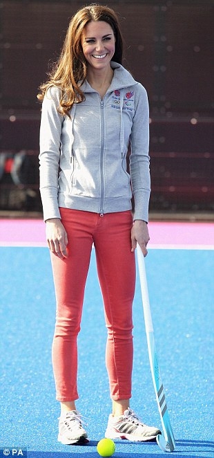 15 березня Кетрін відвідала Олімпійський парк в Лондоні. Дівчина приїхала, як завжди, в елегантному вбранні - жакеті від Pucci і чорних туфельках на підборах. Але під час візиту вона змінила елегантний костюм на спортивні рожеві брюки і кросівки. А все для того, щоб взяти безпосередню участь в тренуванні жіночої збірної Великої Британії з хокею з м'ячем. Спеціально для цього випадку Кейт захопила з собою власну ключку.