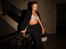 На спокусливих кадрах, опублікованих у Instagram, вона позувала в сліпучому ліфі, чорній спідниці довжини максі та жакеті оверсайз. Образ доповнила трендовою сумкою, високим хвостом і насиченим макіяжем.