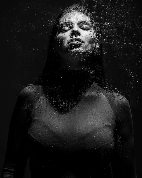 На кадрах, опублікованих в Instagram, блогерка позувала за мокрим склом.