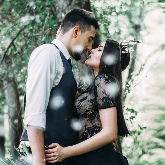 На весільних фото пара позувала, обійнявшись. На Maruv була чорна мереживна сукня, на Олександрові - біла сорочка з краваткою та жакет.