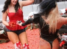 На Золотій площі у Лондоні телеканал МТV влаштував промоцію події European Music Awards. На вулиці пародистки, вдягнені під двох популярних американських співачок Леді Гагу і Кеті Перрі кидали помідори одна в одну. Пародистки вивалялися в помідорах і всіляко демонстрували фігуру.