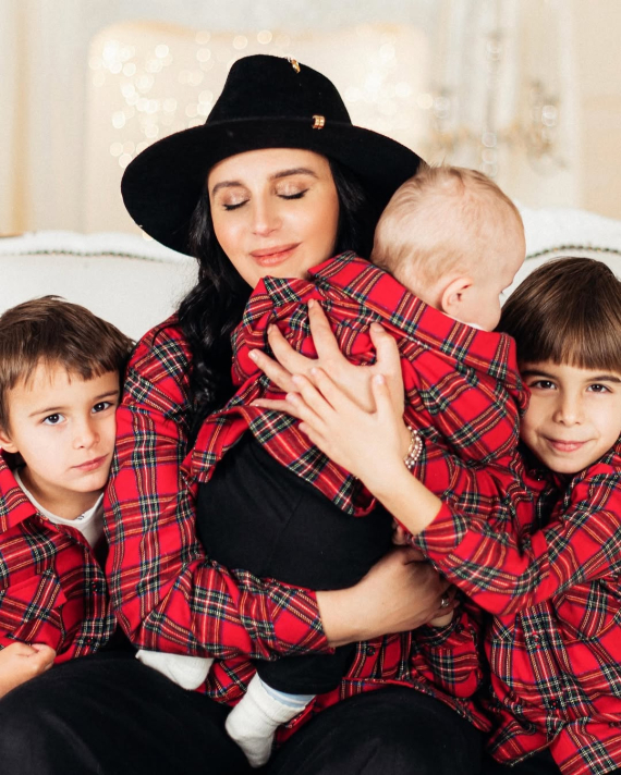 Разом з трьома синами зірка влаштувала студійну новорічну фотосесію. Кадри опублікувала в Instagram.