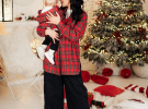 Перед камерою родина постала в картатих сорочках червоного кольору та чорни штанах.