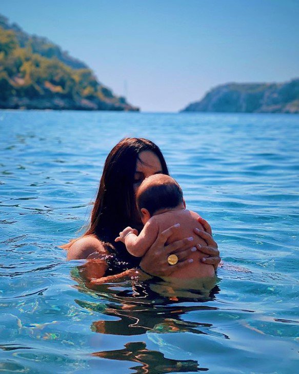 На ніжному фото співачка позує разом із сином у воді.