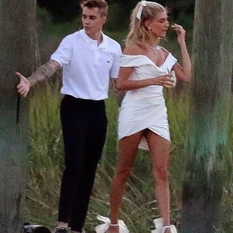Для особливого дня Хейлі обрала білу міні-сукню з відкритими плечима та декольте. Образ нареченої довершували білі "човники" та зібране волосся у білу стрічку. На Джастіні були чорні брюки та біле поло.