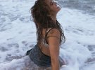 Зірка позувала в сріблястому бікіні в басейні, демонструючи розкішну фігуру. Спокусливий образ доповнила яскравим макіяжем та манікюром, а також браслетами і каблучками.