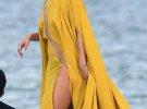 Зірка була у жовтій сукні з прозорими вставками, під якою не було спіднього.