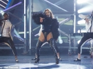 Співачка вийшла на сцену у високих ботфортах і чорному шкіряному купальнику, який не прикривав і половини її прославлених сідниць. Але навіть не одяг став апогеєм виступу, а відверті танці, які виконувала Джей Ло в такому образі.