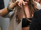 Вчора Дженніфер Лопес приїхала на зйомки в Best Buy electrical store, організовані для просування нової моделі планшетного комп'ютера Blackberry Playbook. Співачка вибрала дуже спокусливе вбрання: витончений топ-бандо з квітковим малюнком, світлий жакет і брюки в гаремному стилі. Все це вона доповнила туфельками на високих підборах і масивним браслетом.