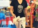 Взагалі співачка, цього дня не виглядала гламурною. Дженніфер Лопес була вдягнута у білі штани, які, до речі, гарно демонстрували принади зірки і у чорну футболку зі страшним черепом.