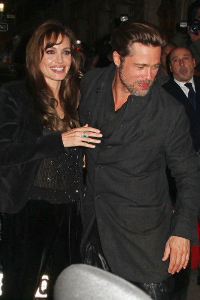 Бред Пітт вдягнув чорні шкіряні штани і піджак сірого кольору, а Джолі була в оксамитовому спортивному костюмі і напівпрозорій чорній блузці.