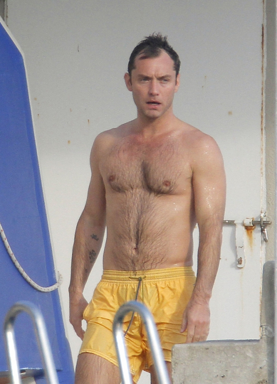 Актор продемонстрував накачене волохате тіло. Щоправда, на подив папараці, на відміну від рук і ніг, на голові зірки волосся було не так багато: на лобі красунчика Джуда була помітна значна лисина.