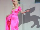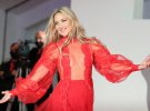 Американська акторка Кейт Хадсон захопила фанів напівпрозорою сукнею від Valentino. Червоне вбрання ледь прикривало голі груди моделі, що додавало пікантності образу. Хадсон зробила ніжний макіяж і червоний манікюр.