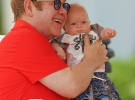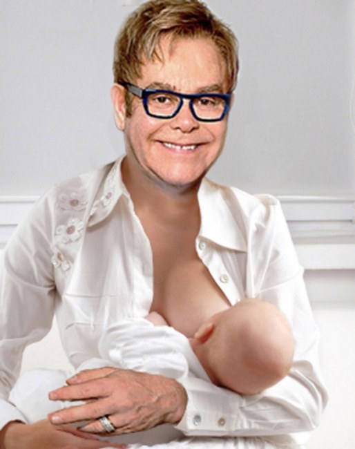 Ірландський художник Кевін Шаркі вирішив зафіксувати на полотні новоспеченого батька Елтона Джона разом з двомісячним сином Закарі. Щоправда, картина вийшла досить екстравагантною: на ній щасливий співак годує дитину грудьми.