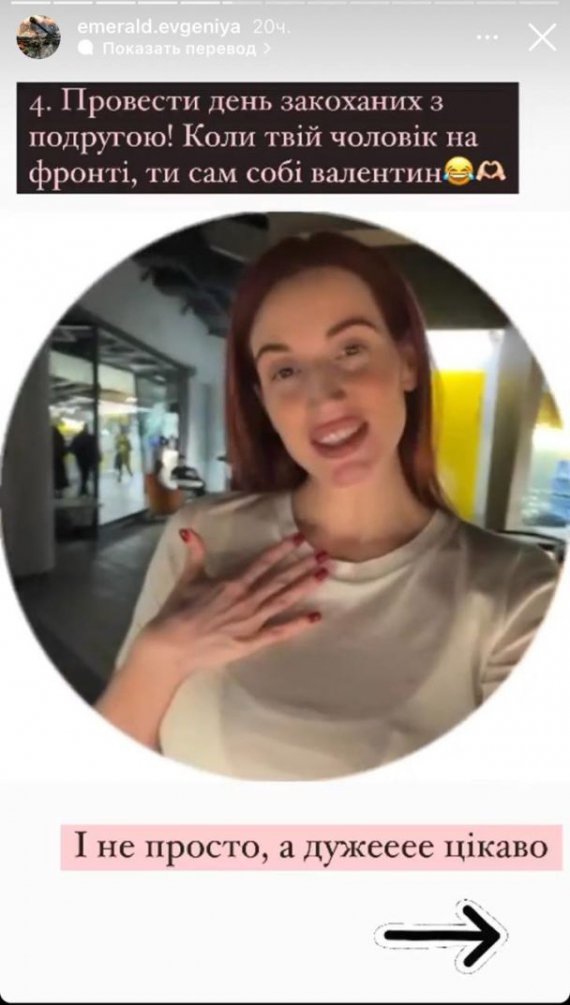 "Провести день закоханих з подругою! Коли твій чоловік на фронті, ти сам собі Валентин", – поділилася Емеральд.