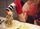 Емілі Ратажковскі знялася на столі вкритому пастою, демонструючи апетитні форми.