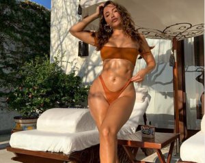 Спочатку на кадрах зірка Instagram позує в чорному монокіні, в який не вмістилися її груди. Потім вона показала блакитний купальник з модним топом-бандо. А третій образ був найромантичніший - рожевий купальник з трусиками з високою посадкою.