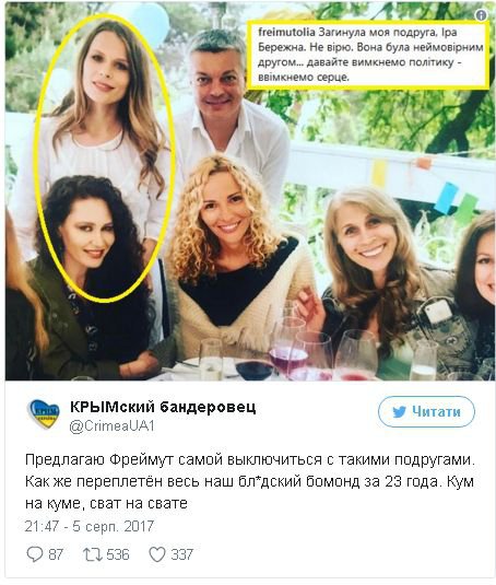 Телеведуча Ольга Фреймут викликала гнів соцмереж через свій пост про загибель екс-нардепа від Партії регіонів Ірини Бережної.