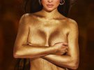 Наймолодша мільярдерка й американська модель Кайлі Дженнер вразила фанів позуванням топлес. Одягнула лише золоті плавки. Її оголені груди, які прикрила руками, обмазали золотою фарбою. Образ зірки доповнив макіяж природних відтінків.