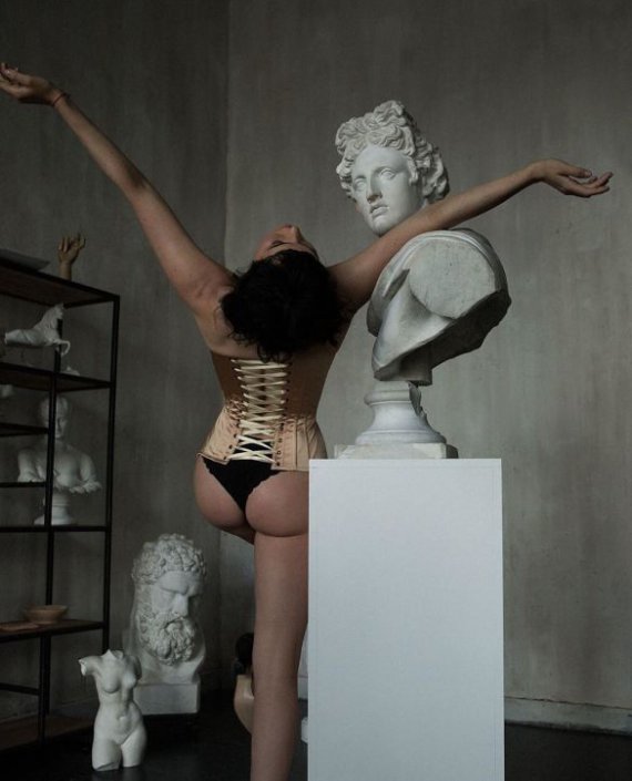 На світлинах Астаф'єва позувала в бежевому корсеті з глибоким декольте та чорному спідньому. Волосся співачки було зібране в пучок, на обличчі мінімум макіяжу.