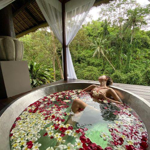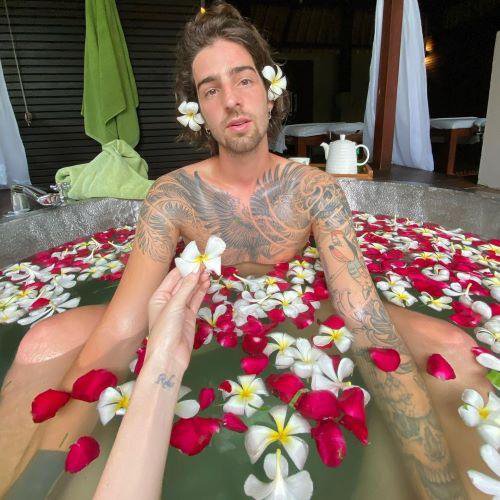 Артистка ніжилася в круглій ванні з квітами під навісом, прикриваючи груди руками. Відповідний кадр Дантес опублікував в Instagram, додавши й своє фото у ванні.