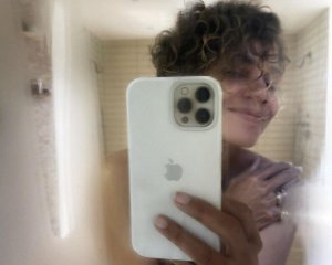 Мокра Беррі кілька разів сфотографувала себе повністю оголеною та зі щасливою посмішкою на обличчі. Запітніле скло додало кадрам інтриги.