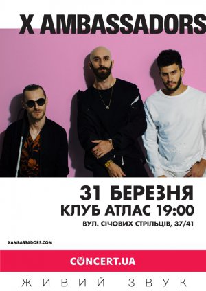 Навесні в Києві вперше зіграють X Ambassadors – бруклінські інді-рокери, відомі у всьому світі хітами - "Unsteady", -"Renegades" та активною соціальної позицією до людей з обмеженими можливостями.