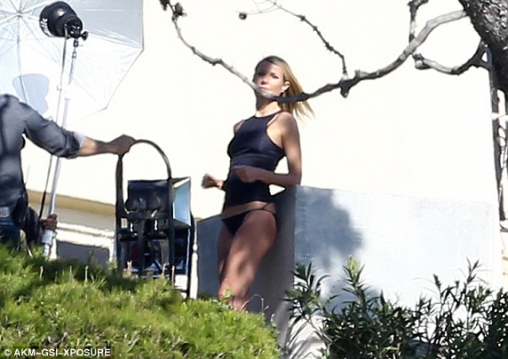 Акторка Гвінет Пелтроу була помічена під час відвертої зйомки. Зірка позувала на вулиці у трусах і топі.