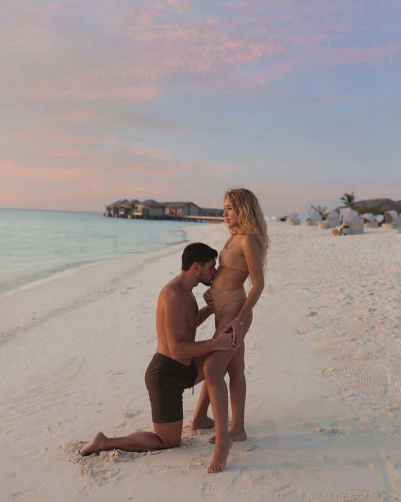 Добринін і Квіткова полетіли відпочивати на Мальдівські острови. Подружжя приголомшило новиною в Instagram. Пара опублікувала фото, на якому позує на пляжі. Добринін став на коліно і ніжно цілує живіт Квіткової.