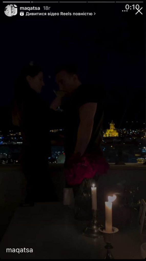 Атмосферу доповнили запалені свічки, червоні троянди, вечеря та напої. Подружжя обіймалося та милувалося вечірнім краєвидом на Тбілісі, Грузія.