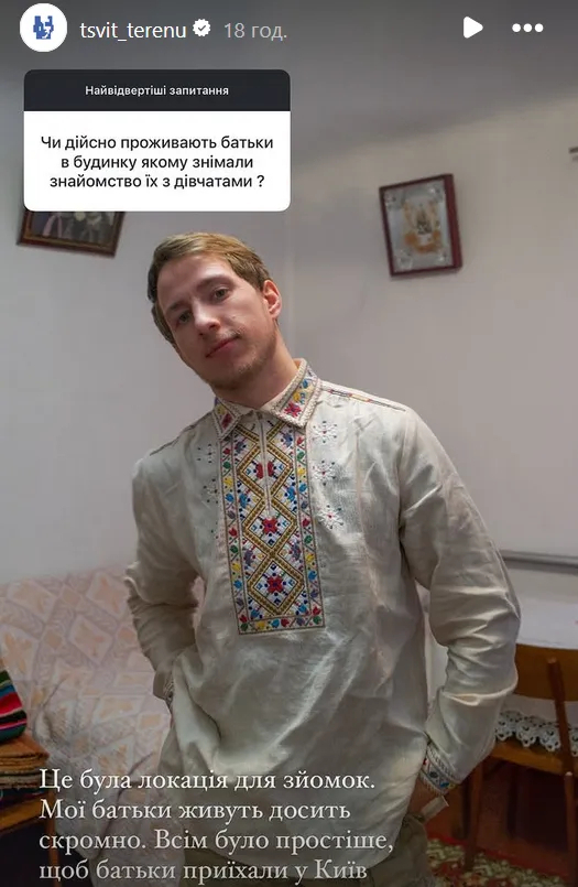 "Це була локація для зйомок. Мої батьки живуть досить скромно. Всім було простіше, щоб батьки приїхали у Київ", - пояснив ветеран.