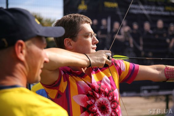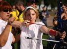 Ольга Кучер також спробувала себе у стрільбі з лука та чесно зізналася, що навіть втримати лук дуже складно, не кажучи вже про те, що потрібно концентруватися і потрапляти в ціль.