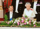Іспанські монархи стали по-справжньому довгоочікуваними гостями в Букінгемському палаці: їх візит до Лондона переносився двічі. Королева Летиція обрала для вечері червону сукню з відкритими плечима і діамантову діадему. Принц Чарльз і герцогиня Корнуольська теж прибули на банкет, як і герцог Единбурзький, який з осені цього року йде у відставку, тому вечеря на честь Філіпа VI, можливо, стане його останньою публічною вечерею.