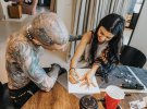 Нещодавно Кортні опублікувала світлини, на яких власноруч набиває коханому чергове татуювання.